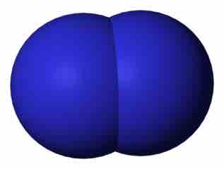 A space-filling model of the homonuclear diatomic molecule nitrogen. Note the inevitable linear geometry.