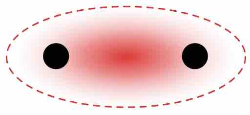 Atomic orbitals from two atoms overlap in the region between the nuclei (internuclear axis). Therefore, the resulting electron density of the shared electrons lies in the red region shown in the image.
