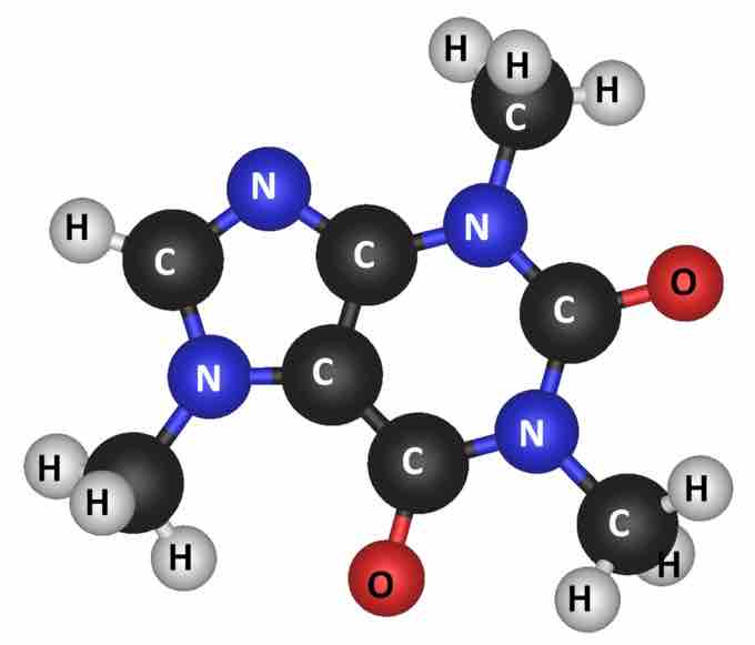 Caffeine is a complicated molecule, composed of many atoms bonded to each other in a specific arrangement.