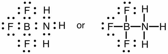 We might conclude from this one example that boron atoms obey a sextet rule. However, boron will form a stable ion with hydrogen, BH4-, in which the boron atom does have a complete octet. In addition, BF3 will react with ammonia (NH3), to form a stable compound, NH3BF3, for which a Lewis structure can be drawn that shows boron with a complete octet.