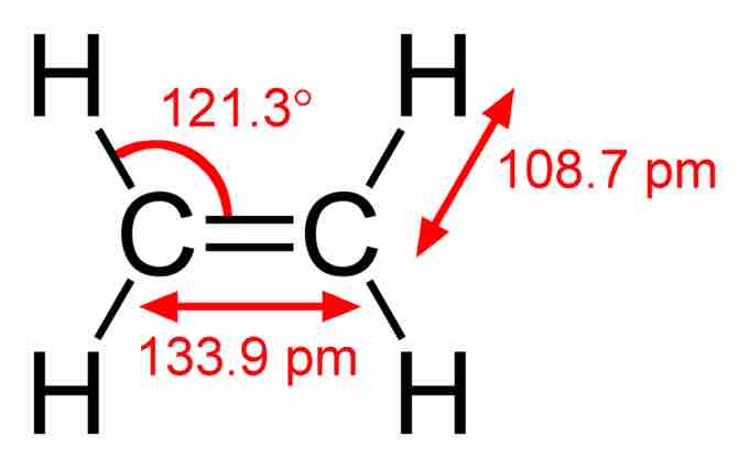 An example of a simple molecule with a double bond between carbon atoms. The bond lengths and angles (indicative of the molecular geometry) are indicated.