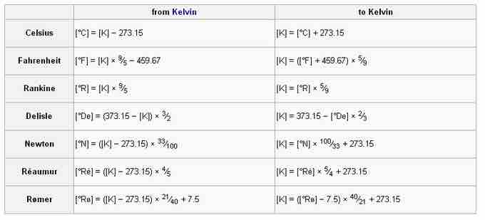 Use the equations in this table to calculate temperatures using the kelvin measurement system.