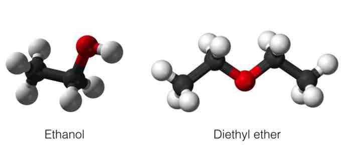 Ethanol contains a hydrogen atom that is a hydrogen bond donor because it is bonded to an electronegative oxygen atom, which is very electronegative, so the hydrogen atom is slightly positive. Diethyl ether contains an oxygen atom that is a hydrogen bond acceptor because it is not bonded to a hydrogen atom and so is slightly negative.