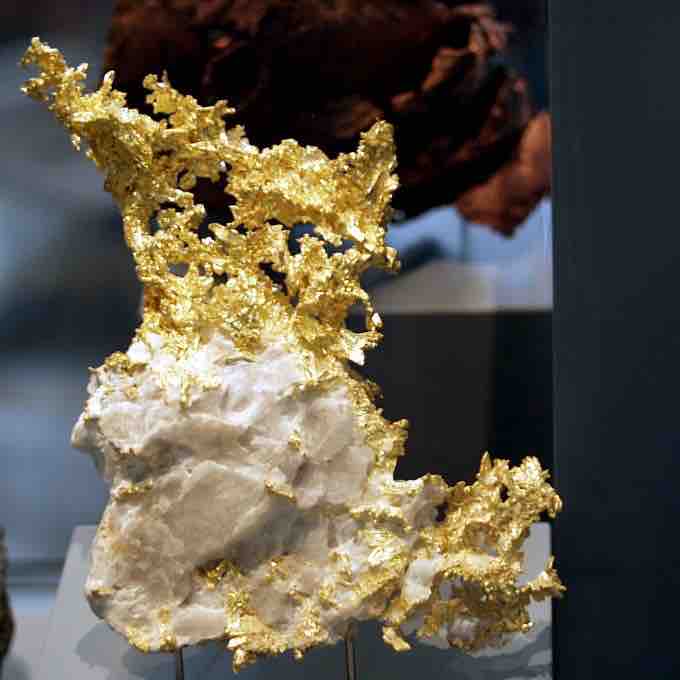 Native gold partially embedded in quartz gangue.