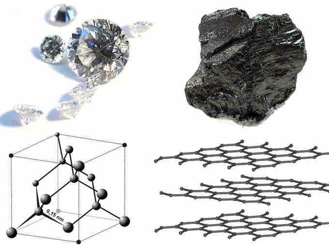 Diamond and graphite are two allotropes of carbon -- pure forms of the same element that differ in structure.