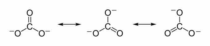The carbonate ion has three resonance structures. The true structure of the carbonate is an average of these three resonance structures.