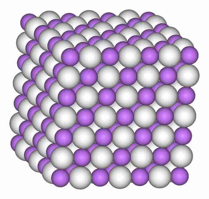 This is a space-filling model of a crystal of lithium hydride, LiH, a binary halide.
