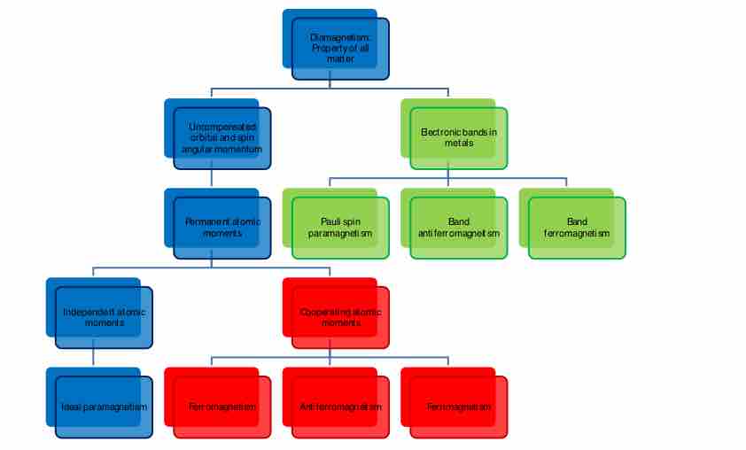 There are various types of magnetism identified to date that can be organized in a hierarchy.