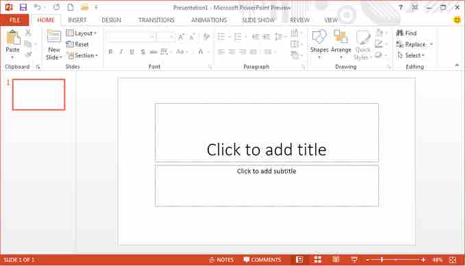 Titles and sub-titles: After first opening PowerPoint to start a new presentation using the Blank Presentation Template, the user can select a title and sub-title for the presentation, using one of a variety of fonts and colors.