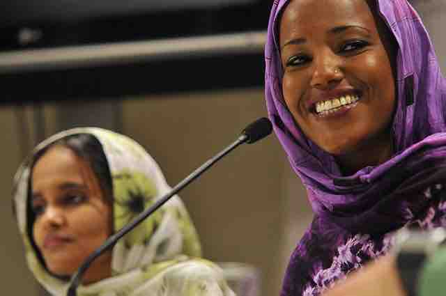 Aziza Brahim & Memona Mohamed during a press conference presentation of the movie "Wilaya", at the 10th Human Rights film festival in San Sebastian, Spain.
