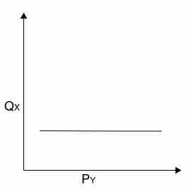 Two goods that are independent have a zero cross elasticity of demand: as the price of good Y rises, the demand for good X stays constant.