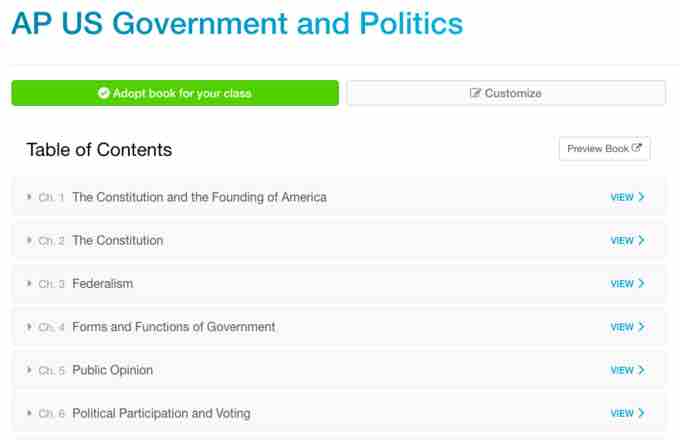 An example of a Boundless book that has been aligned to adhere to the course syllabus for AP Government and Politics.