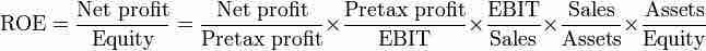 Expressed as a percentage, return on equity is best used to compare companies in the same industry. The decomposition of return on equity into its various factors presents various ratios useful to companies in fundamental analysis.