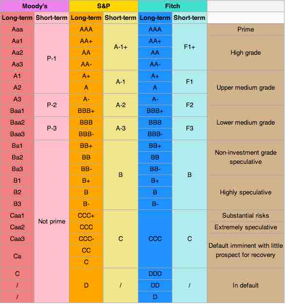 Credit ratings are used to report on the credit worthiness of a bond issuing company or government
