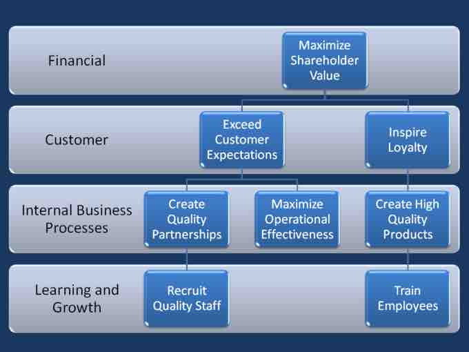 This strategy map shows high level strategic groupings and objectives in the linked boxes.