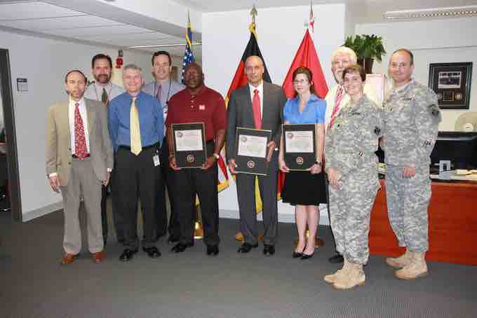 A group of leaders receiving recognition for their service.