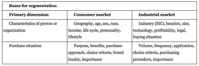 There are many different ways by which a company can segment its market, and the chosen process varies from one product to another (see ). Also, since markets are very dynamic, and products change over time, the bases for segmentation must likewise change.