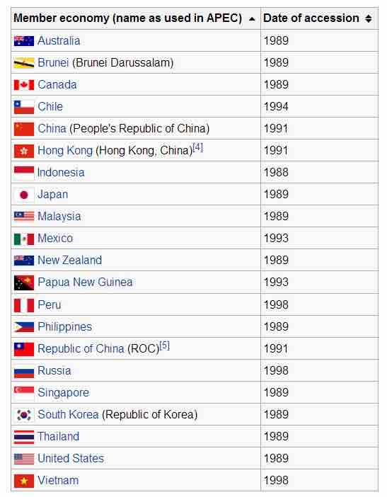 APEC's 21 members have a Pacific Coastline and a separate economy.