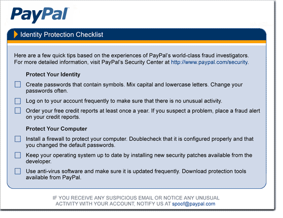 Online merchants such as PayPal often provide security tips to help consumers protect their personal information.