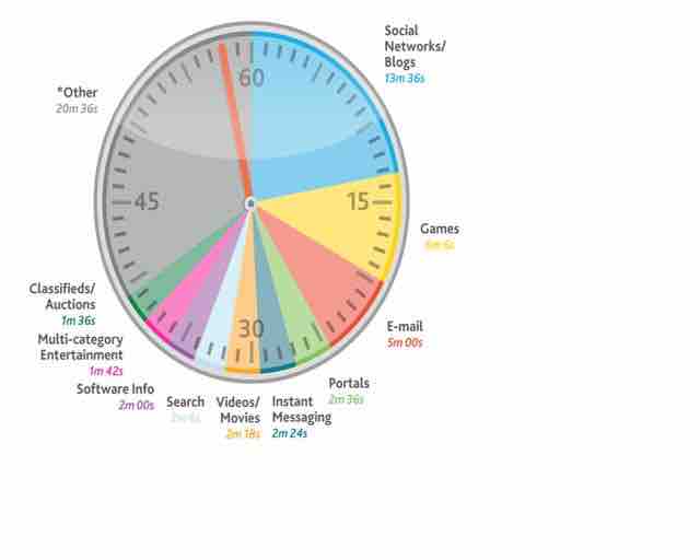 This is a basic chart showing online usage. It displays the types of online activity and how long the person was on those types of websites.