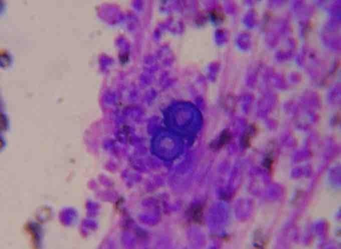 Blastomycosis (also known as "North American blastomycosis," "Blastomycetic dermatitis," and "Gilchrist's disease") is a fungal infection caused by the organism Blastomyces dermatitidis . Endemic to portions of North America, blastomycosis causes clinical symptoms similar to histoplasmosis.