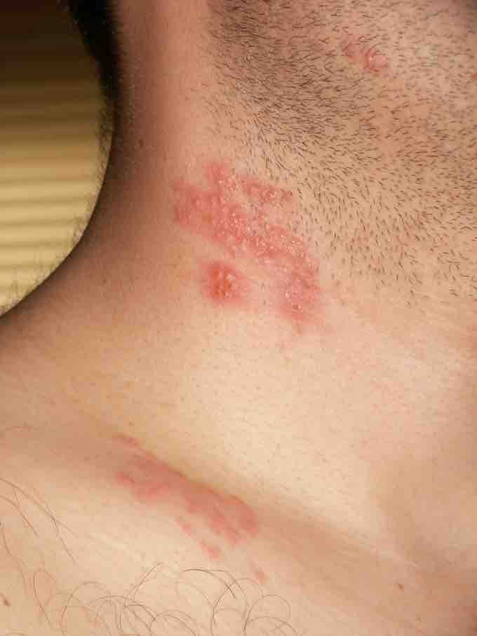 Herpes zoster (or simply zoster), commonly known as shingles, is a viral disease characterized by a painful skin rash with blisters in a limited area on one side of the body, often in a stripe. The initial infection with varicella zoster virus (VZV) causes the acute (short-lived) illness chickenpox which generally occurs in children and young people. Once an episode of chickenpox has resolved, the virus is not eliminated from the body but remains latent and can go on to cause shingles—an illness with very different symptoms—often many years after the initial infection. Although the zoster rash usually heals within two to four weeks, some sufferers experience residual nerve pain for months or years, a condition called postherpetic neuralgia. Exactly how the virus remains latent in the body, and subsequently re-activates is not understood. The earliest symptoms of herpes zoster, which include headache, fever, and malaise, are nonspecific, and may result in an incorrect diagnosis. In most cases after 1–2 days, but sometimes as long as three weeks, the initial phase is followed by the appearance of the characteristic skin rash. The pain and rash most commonly occurs on the torso, but can appear on the face, eyes, or other parts of the body. At first the rash appears similar to the first appearance of hives. However, unlike hives, herpes zoster causes skin changes limited to a dermatome, normally resulting in a stripe or belt-like pattern that is limited to one side of the body and does not cross the midline. The goals of treatment are to limit the severity and duration of pain, shorten the duration of a shingles episode, and reduce complications. Symptomatic treatment is often needed for the complication of postherpetic neuralgia. Topical lotions containing calamine can be used on the rash or blisters and may be soothing. Antiviral drugs inhibit VZV replication and reduce the severity and duration of herpes zoster with minimal side effects, but do not reliably prevent postherpetic neuralgia. Of these drugs, acyclovir has been the standard treatment.