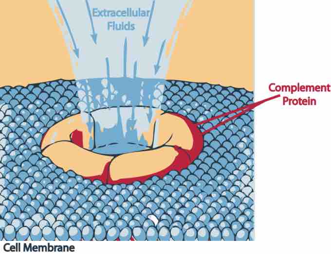 A complement protein attacking an invader.