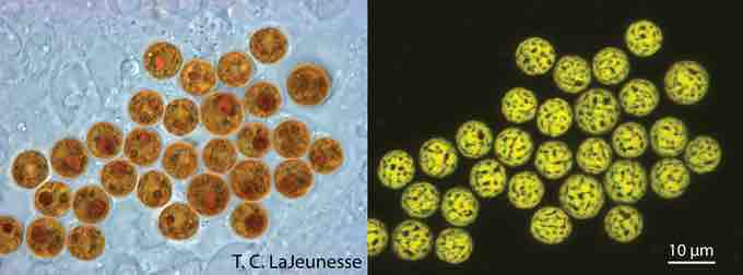 Symbiodinium are known primarily for their role as mutualistic endosymbionts. In hosts, they usually occur in high densities, ranging from hundreds of thousands to millions per square centimeter. The successful culturing of swimming gymnodinioid cells from coral led to the discovery that "zooxanthellae" were actually dinoflagellates. Each Symbiodinium cell is coccoid in hospite (living in a host cell) and surrounded by a membrane that originates from the host cell plasmalemma during phagocytosis. This membrane probably undergoes some modification to its protein content, which functions to limit or prevent phago-lysosome fusion. The vacuole structure containing the symbiont is therefore termed the symbiosome, and only a single symbiont cell is found within each symbiosome. It is unclear how this membrane expands to accommodate a dividing symbiont cell. Under normal conditions, symbiont and host cells exchange organic and inorganic molecules that enable the growth and proliferation of both partners.