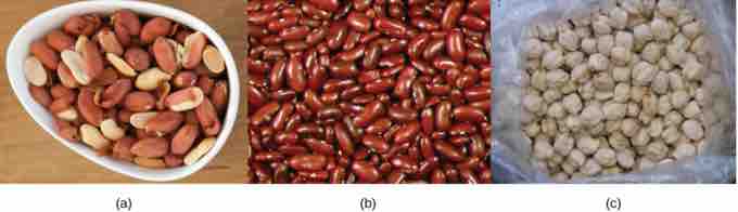Some common edible legumes, such as (a) peanuts, (b) beans, and (c) chickpeas, are able to interact symbiotically with soil bacteria that fix nitrogen.