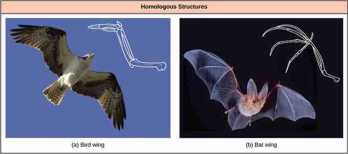 Bat and bird wings are homologous structures, indicating that bats and birds share a common evolutionary past.