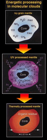 There are many models that are being used to explain these problems and others; one that is quite intriquing is the idea that the early earth was actually bombarded by extraterrestrial organic molecules. It should be clear the term extraterrestial in these abiogensis models are not referring to little green men, but rather complex organic molecules, of which the abiogenesis occurred in the more favourable conditions for such reactions in space. For instance, the environment in space is strongly reducing (ie no oxygen), and it has been suggested that meteorites introduced the phosphorus species to earth, which explains the need of monophosphate. Homochirality may also have started in space, as the studies of the amino acids on a meteorite showed L-alanine to be more than twice as frequent as its D form, and L-glutamic acid was more than 3 times prevalent than its D counterpart. While the idea of extraterrestrial abiogenesis once seemed far-fetched, the presence of organic molecules on meteorites (and recently in stars themselves) adds credence to this exciting possibility .