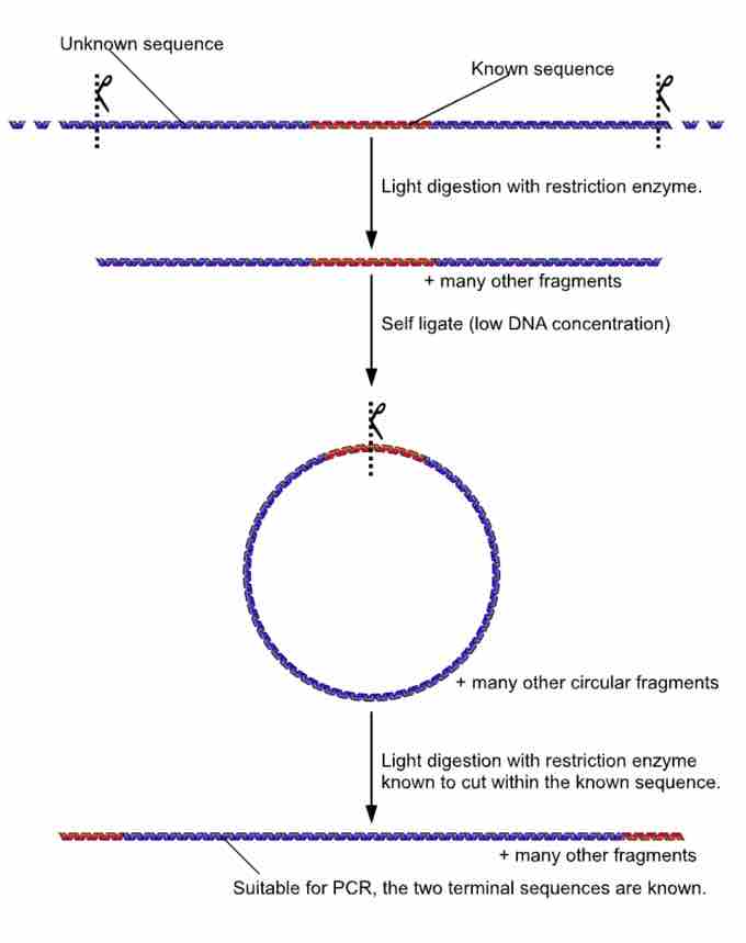 Southern hybridization is rather time-consuming and requires additional procedures for localizing ISs. Inverse PCR, a commonly-used PCR method for recovering unknown flanking sequences of a known target sequence, uses a library of circularized chromosomal DNA fragments as a template and two outward primers located in each end of the known fragment for amplification . However, when a target sequence has multiple genomic locations, the variously-sized DNA circles formed are difficult to amplify simultaneously. Also, the length of each restriction DNA fragment containing a target sequence must be determined by Southern hybridization followed by sub-genomic fractioning before intramolecular ligation and PCR amplification. These difficulties render Southern hybridization and iPCR impractical as techniques for quickly surveying repetitive elements in genomes.
