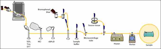 The Western blot (sometimes called the protein immunoblot) is a widely accepted analytical technique used to detect specific proteins in a given sample of tissue homogenate or extract. Western blot samples can be taken from whole tissue or from cell culture. Solid tissues are first broken down mechanically using either a blender (for larger sample volumes), a homogenizer (smaller volumes), or by sonication . Assorted detergents, salts, and buffers may be employed to encourage lysis of cells and to solubilize proteins. The technique uses gel electrophoresis to separate native proteins by 3-D structure or denatured proteins by the length of the polypeptide.