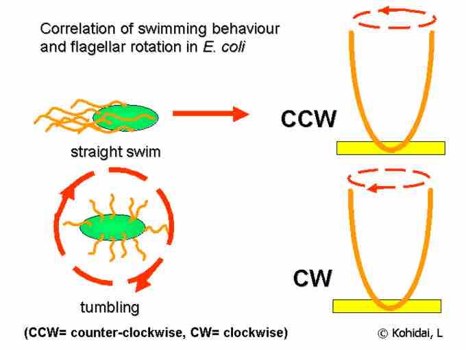 2. Clockwise rotation - breaks the flagella bundle apart such that each flagellum points in a different direction, causing the bacterium to tumble in place.