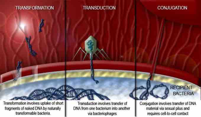 Horizontal gene transfer is a major mechanism promoting bacterial antibiotic resistance, as the plasmid DNA can transfer genes from one species of bacteria to another. The plasmid DNA which is transferred often has developed genes that encode for resistance against antibiotics. The ability to transfer this resistance from one species to another is increasingly becoming an issue in clinics for treatment of bacterial infections. The process of horizontal gene transfer can occur via three mechanisms: transformation, transduction and conjugation. Plasmid DNA transfer is associated with conjugation as the host-to-host transfer requires direct mechanical transfer. The advantages of plasmid DNA transfer allow for survival advantages.