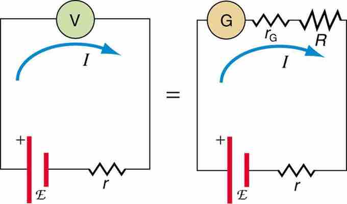 When measuring the EMF of a battery and connecting the battery directly to a standard voltmeter, as shown in , the actual quantity measured is the terminal voltage V. Voltage is related to the EMF of the battery by V=emf−Ir, where I is the current that flows and r is the internal resistance of the battery.