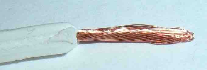 This wire consists of a core of copper (a conductor) and a coating of polyethylene (an insulator). The copper allows current to flow through the wire, while the polyethylene ensures that the current does not escape.