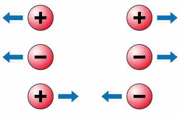 Charges of like sign (positive and positive, or negative and negative) will repel each other, whereas charges of opposite sign (positive and negative) will attract each another, as shown in .
