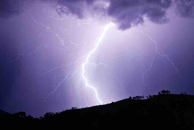 Static electricity is when an excess of electric charge collects on an object's surface. It can be created through contact between materials, a buildup of pressure or heat, or the presence of a charge. Static electricity can also be created through friction between a balloon (or another object) and human hair (see ). It can be observed in storm clouds as a result of pressure buildup; lightning (see ) is the discharge that occurs after the charge exceeds a critical concentration.