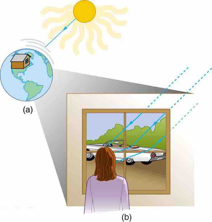 Direct light travel is when a ray of light starts at a source, and continues to travel from that source to its destination without encountering any interference. The light will continue in a straight line or ray until it reaches the observer. An example of this is the light that travels from the sun to the earth.