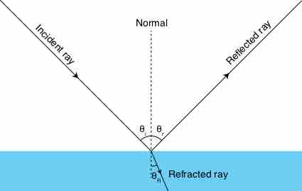 When light is bounced off of a material, such as a mirror, this is called a reflection. This is when a light ray, the incident ray, hits a reflective material and bounces off as the reflected ray at a specific angle. This is called the angle of reflection . Since the movement of the light rays can be shown geometrically, if a mirror is one-half your height, you could see your whole body in the reflection.