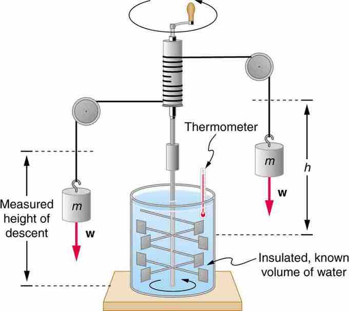 Schematic depiction of Joule's experiment that established the equivalence of heat and work