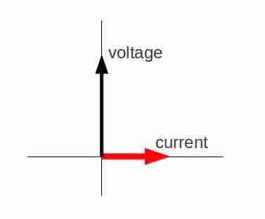 The voltage across an inductor "leads" the current because of the Lenz's law. Therefore, the phasor representing the current and voltage would be given as in . Again, the phasors are vectors rotating in counter-clockwise direction at a frequency