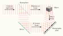 Holograms are recorded using a flash of light that illuminates a scene and then imprints on a recording medium, much in the way a photograph is recorded. In addition, however, part of the light beam must be shone directly onto the recording medium - this second light beam is known as the reference beam.