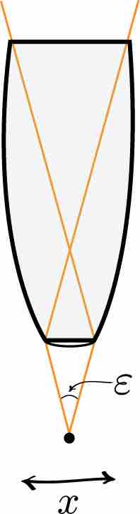Heisenberg's microscope, with cone of light rays focusing on a particle with angle \epsilon