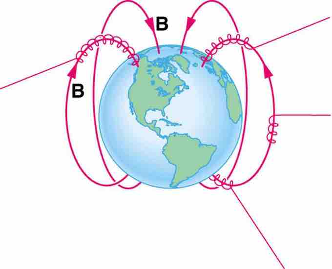 Charged Particles Spiral Along Earth's Magnetic Field Lines