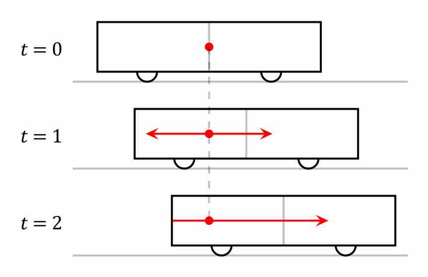 The train-and-platform experiment from the reference frame of an observer onboard the train.
