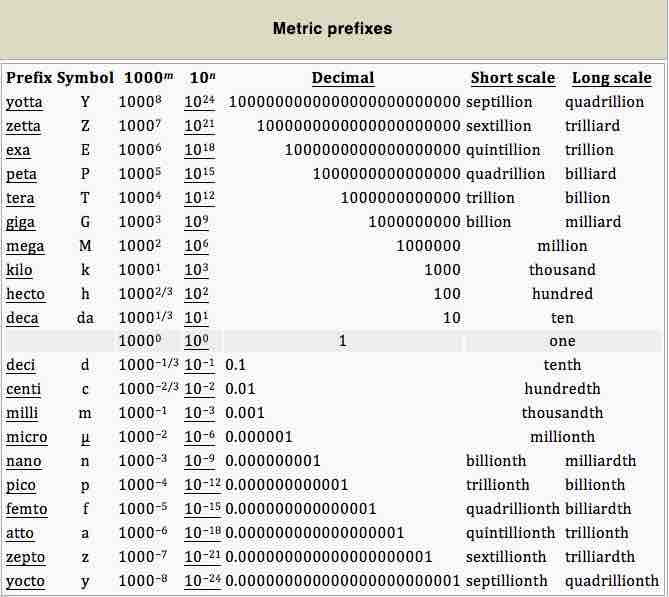 A metric prefix, or SI prefix, is a unit prefix that precedes a basic unit of measure to indicate a multiple or fraction of the unit. Each prefix has a unique symbol that is prepended to the unit symbol. The prefix kilo-, for example, may be added to gram to indicate multiplication by one thousand; one kilogram is equal to one thousand grams (1 kg = 1000 g). The prefix centi-, likewise, may be added to meter to indicate division by one hundred; one centimeter is equal to one hundredth of a meter (1 cm = 0.01 m). Prefixes in varying multiples of 10 are a feature of all forms of the metric system, with many dating back to the system's introduction in the 1790s. Today, the prefixes are standardized for use in the International System of Units (SI) by the International Bureau of Weights and Measures.There are twenty prefixes officially specified by SI .