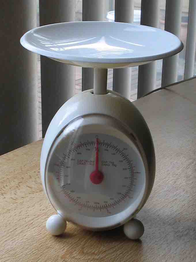 A spring scale measures weight by finding the extent to which a spring is compressed.This is proportional to the force that a mass exerts on the scale due to its weight.