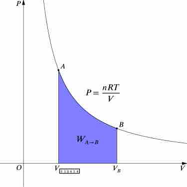 In thermodynamics, the work involved when a gas changes from state A to state B is simply
